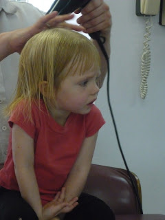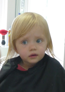… and, instead of composing a post with actual thoughts and ideas, I simply document a completely insignificant but nonetheless memorable milestone in my daughter’s life: the first real (i.e. not performed by Mommy in the kitchen with a pair of cuticle scissors) haircut.